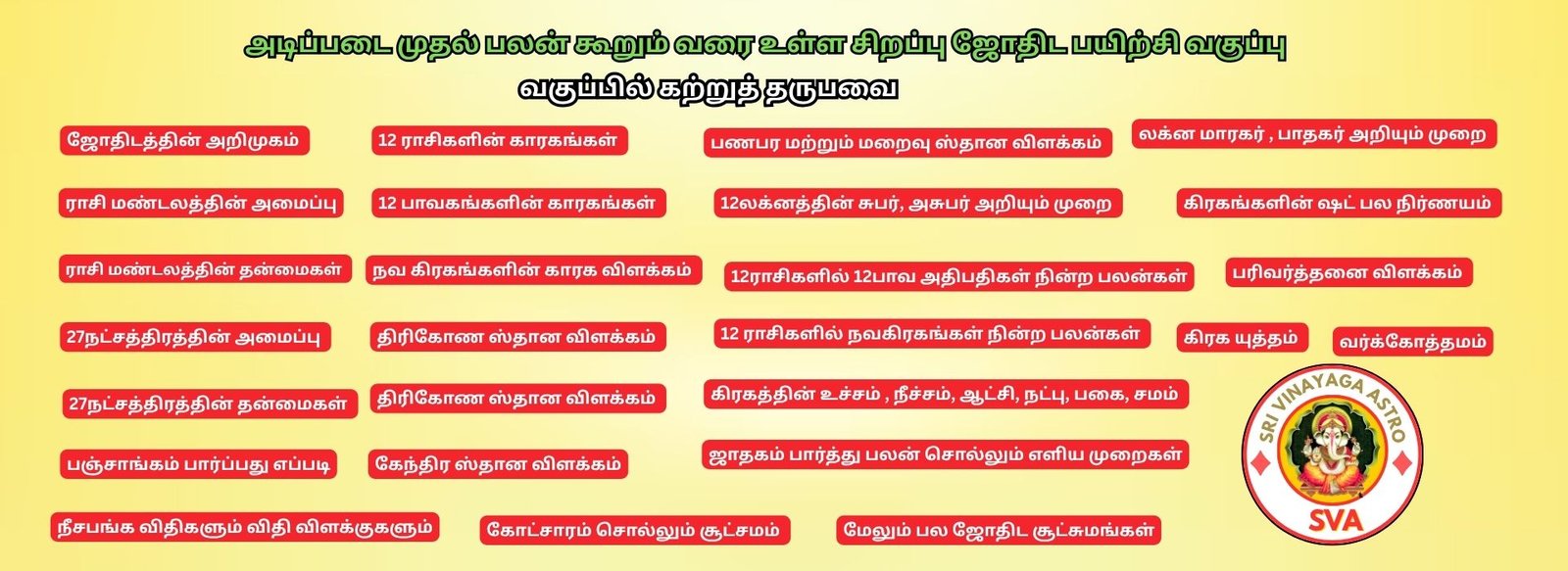 ஜோதிடம் என்பது மனித வாழ்க்கையையும், கிரகங்களின் இயக்கத்தையும் இணைக்கும் ஒரு பழமையான அறிவியல். இந்தக் கலைக்கான அடிப்படை அறிவை கற்றுக்கொள்வதற்காக ஏற்பாடு செய்யப்படும் பயிற்சி வகுப்புகளே ஜோதிடத்தின் அடிப்படை வகுப்புகள் எனப்படுகிறது.